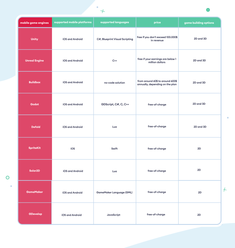 The choice of mobile game engine is one of the most important decisions that must be made in an early stage of game development. Once you settle on the game genre, art style, platforms, mechanics, storyline, and initial budget during the planning phase, the question of which game engine to go for becomes essential. It’s worth knowing the current trends in the field and basic information about the engine beforehand, and we will provide you with just that. Let’s start!
